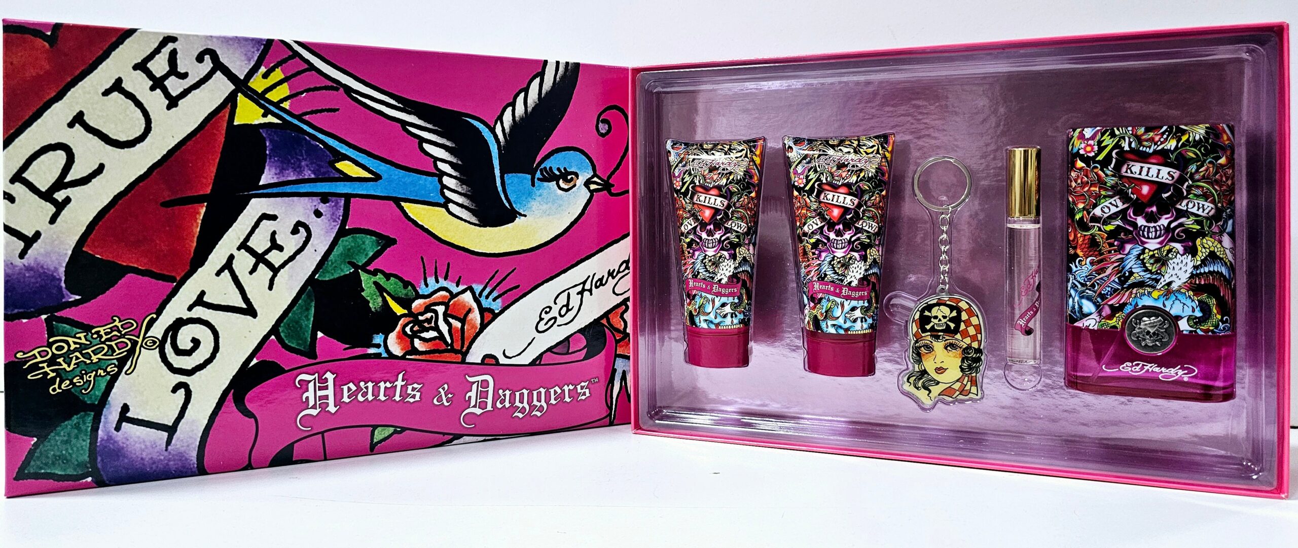 Ed Hardy Hearts And Daggers 5Pc Set 100Ml Edp W/ Key Chain Women